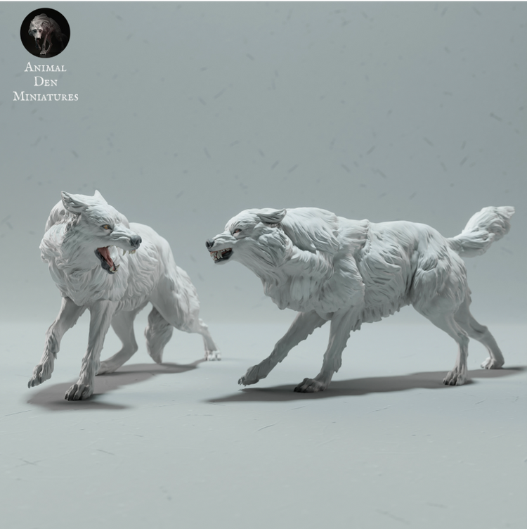 Fighting arctic wolves from animal den miniatures as 3D print