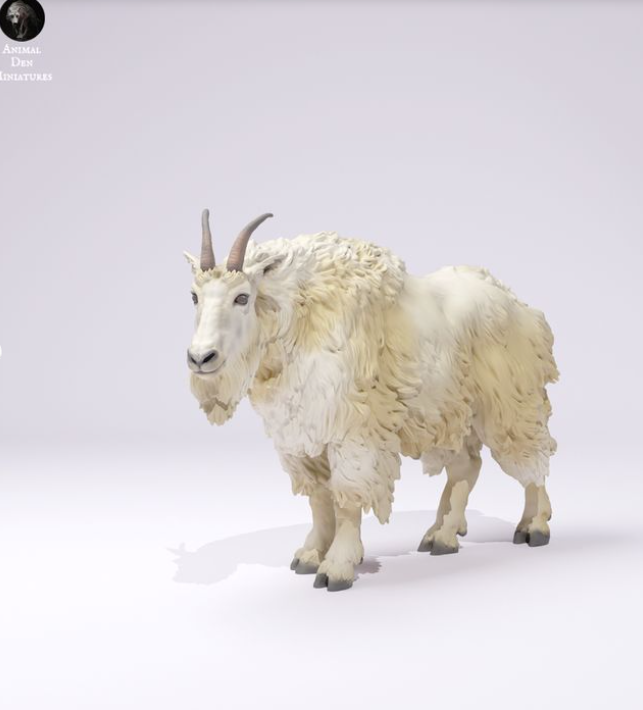 This mountain goat is a 3D model from the wonderful creator Animal Den Miniatures, which you can purchase from us as a 3D print. You will receive the print unpainted, so you can let your creativity run wild.
