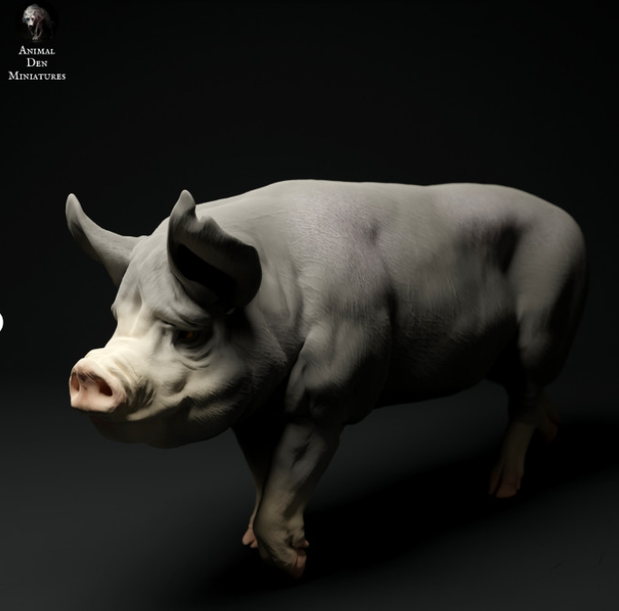 This Bergshire boar is a 3D model from the wonderful creator Animal Den Miniatures, which you can purchase from us as a 3D print. You'll receive the print unpainted, so you can let your creativity run wild.