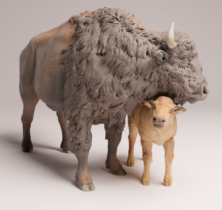 This bison with calf is a 3D model from the wonderful creator Animal Den Miniatures, which you can purchase from us as a 3D print. You will receive the print unpainted, so you can let your creativity run wild.