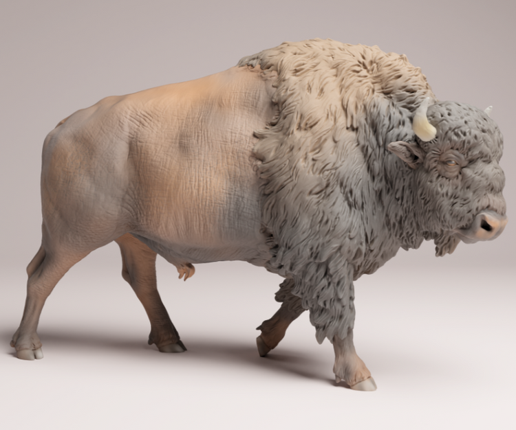 This bison is a 3D model from the wonderful creator Animal Den Miniatures, which you can purchase from us as a 3D print. You will receive the print unpainted, so you can let your creativity run wild.