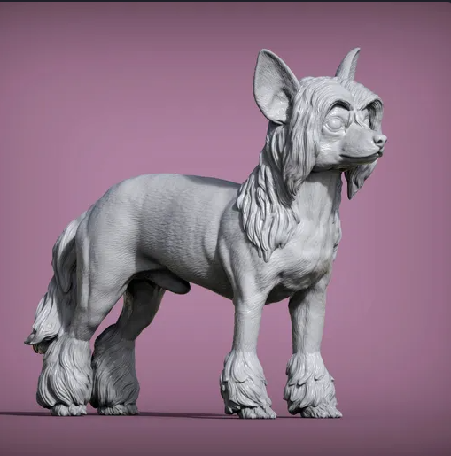 This cute little Chinese Crested Dog is a 3D model by the wonderful creator Akuzmenko, which you can buy from us as a 3D print.