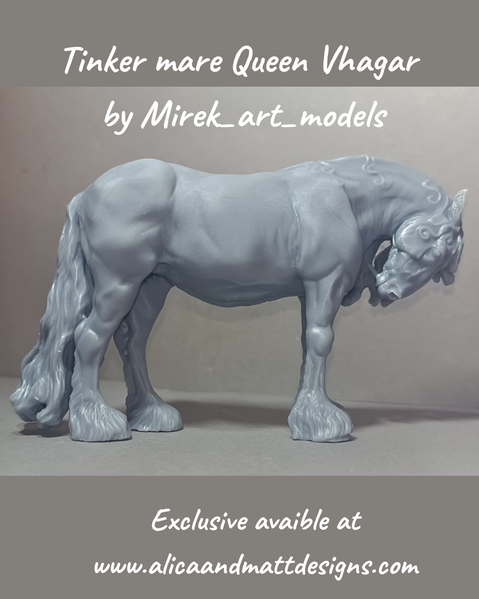 This noble Tinker mare named "Queen Vhagar" is a 3D model by the wonderful creator Mirek_Art-modelss, which you can purchase from us as a 3D print. You will receive the print unpainted, so you can let your creativity run wild.