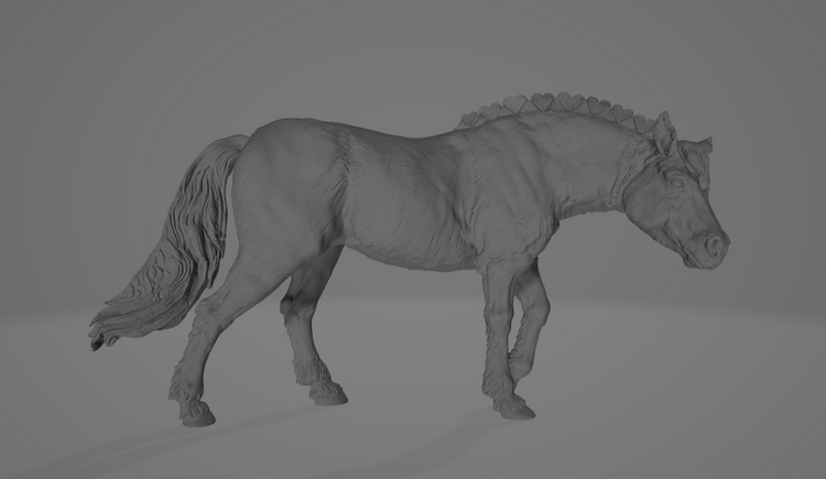 This fluffy Fjord horse mare with a heart-shaped mane is a basic model by the wonderful creator animal den miniatures, which we were allowed to modify with her permission. Thank you so much for that <3. The original model is the Mongolian wild horse mare.