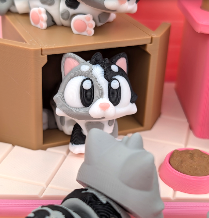 Flexi Cats with accessories from GOB3D / colorful FDM print
