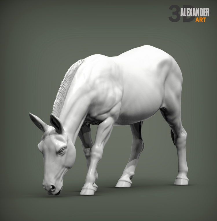 This grazing donkey is a 3D model by the wonderful creator Akuzmenko, which you can buy from us as a 3D print.