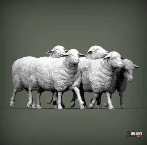 This flock of sheepThis is a 3D model by the wonderful creator Alexander3dart, which you can buy from us as a 3D print. The flock consists of 5 sheep.