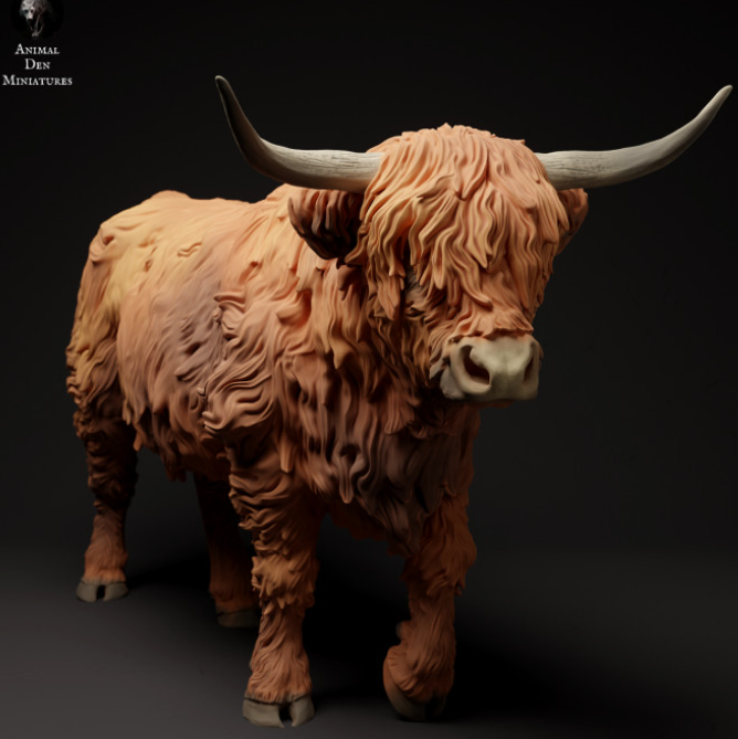 The running Scottish Highland cattle is a 3D model by the wonderful creator Animal Den Miniatures, which you can purchase from us as a 3D print. The print is unpainted, so you can let your creativity run wild.