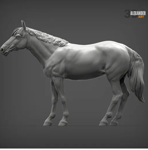 This interested-looking horse is a 3D model by the wonderful artist Akuzmenko, which you can buy from us as a 3D print.