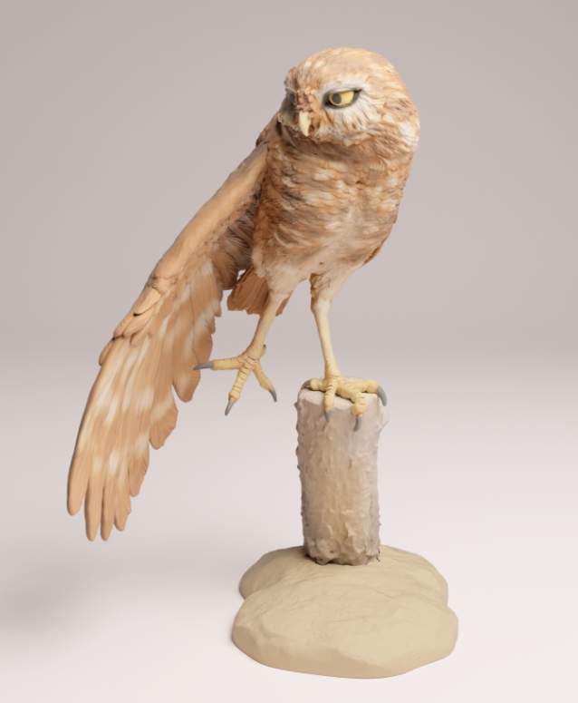 This burrowing owl is a 3D model from the wonderful creator animal den miniatures, which you can purchase from us as a 3D print. You will receive the print unpainted, so you can let your creativity run wild.
