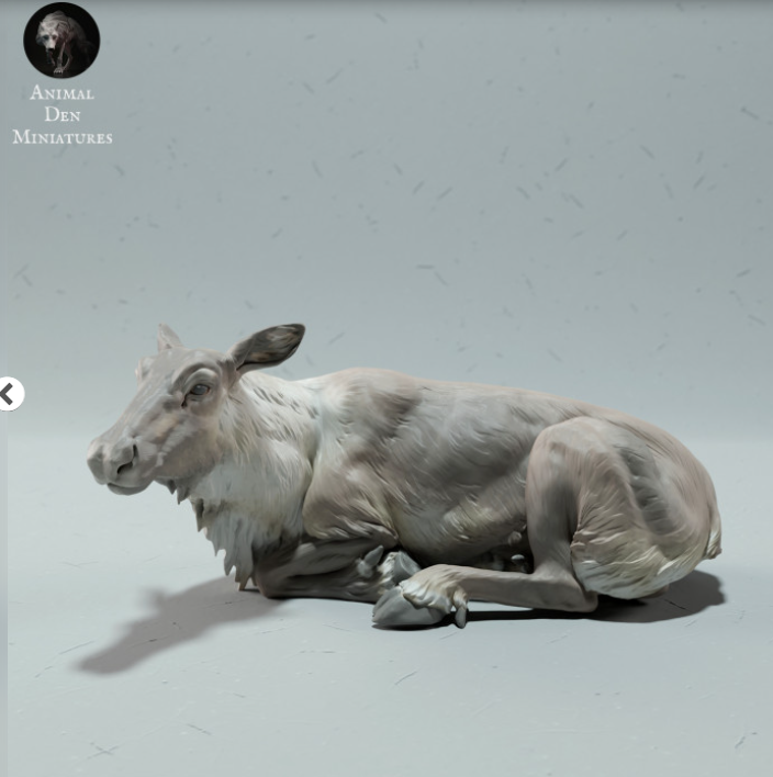 This lying caribou cow is a 3D model by the wonderful artist Animal den miniatures, which you can buy from us as a 3D print.