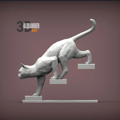 This cat descending a staircase is a 3D model by the wonderful creator Akuzmenko, which you can buy from us as a 3D print.