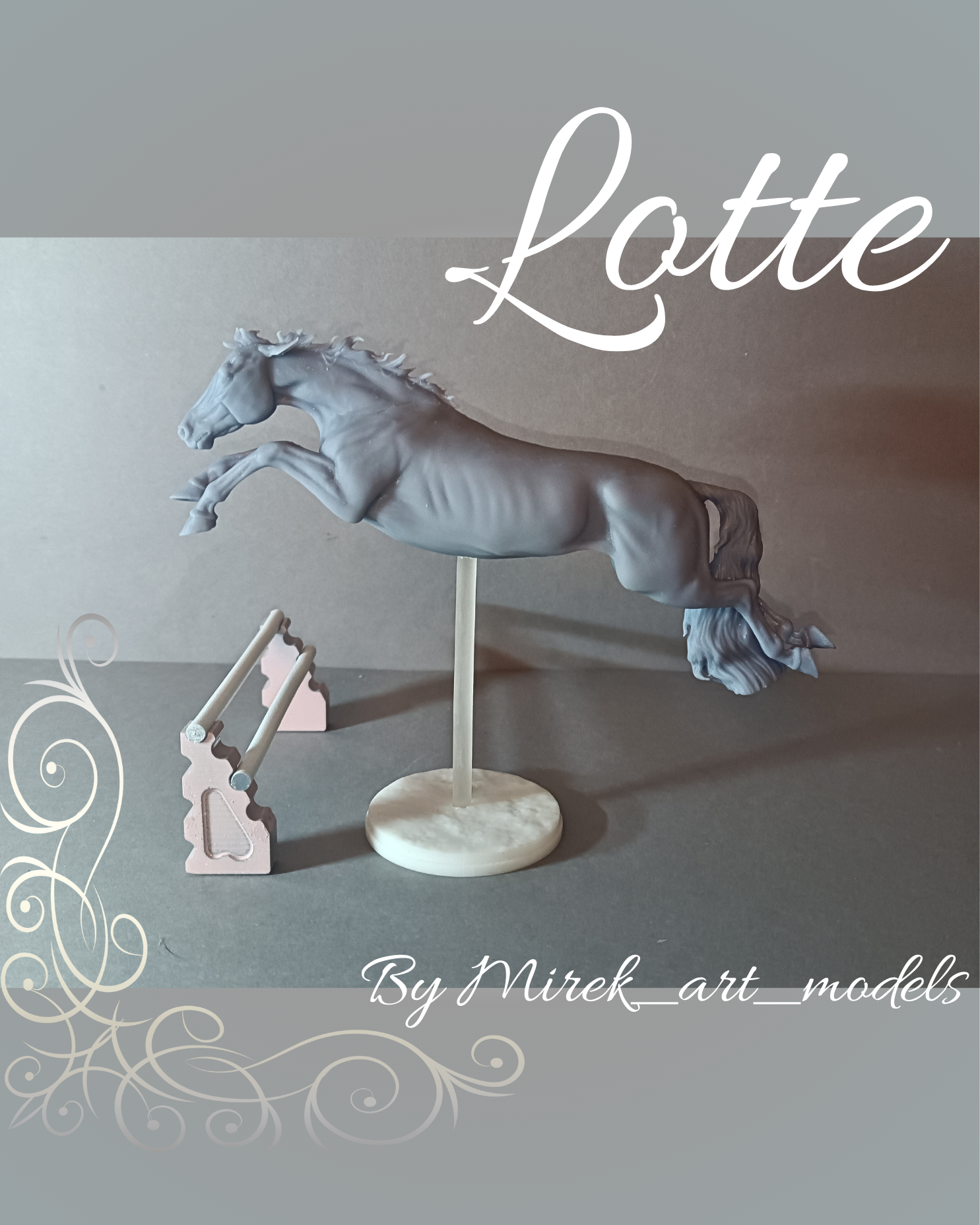 This jumping mare named Lotte is a 3D model by the wonderful creator Mirek_art_models, which you can purchase from us as a 3D print. You will receive the print unpainted, so you can let your creativity run wild.