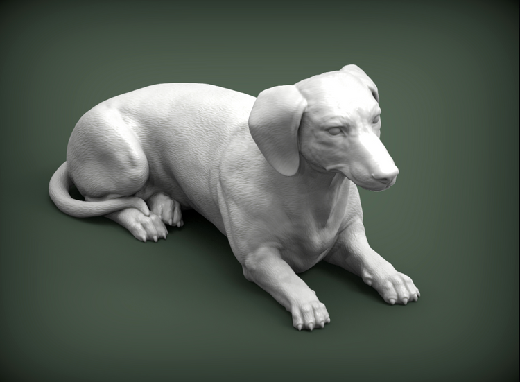 This lying dachshund is a 3D model by the wonderful creator Akuzmenko, which you can buy from us as a 3D print.