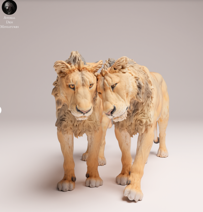 This cuddling lion couple is a 3D model by the wonderful creator Animal den miniatures, which you can buy from us as a 3D print.