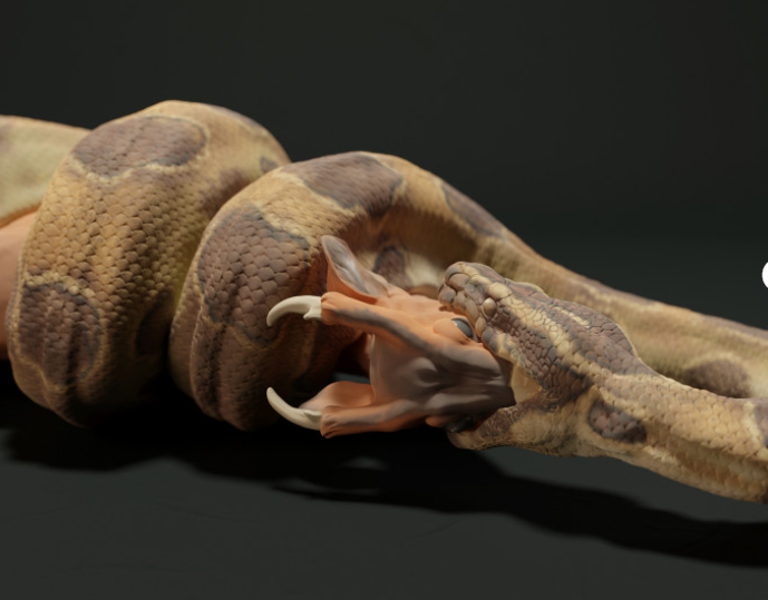 The feeding python is a 3D model by the wonderful creator Animal den Miniatures, which you can purchase from us as a 3D print. You will receive the print unpainted, so you can let your creativity run wild.