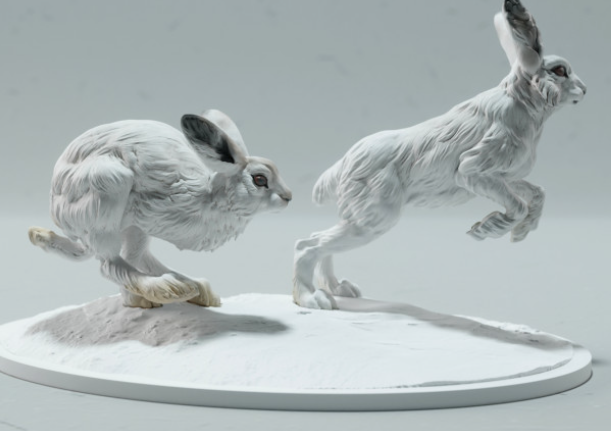 These running snow hares are a 3D model from the wonderful maker Animal den Miniatures, which you can purchase from us as a 3D print. You will receive the print unpainted, so you can let your creativity run wild.