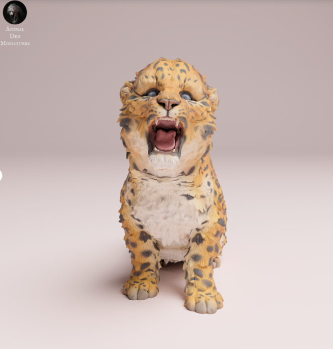This cute little screaming Amur leopard baby is an original 3D model from the wonderful maker Animal den miniatures, which you can buy from us as a 3D print.