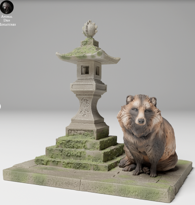Tanuki next to Chinese lantern by Animal den miniatures as 3D print