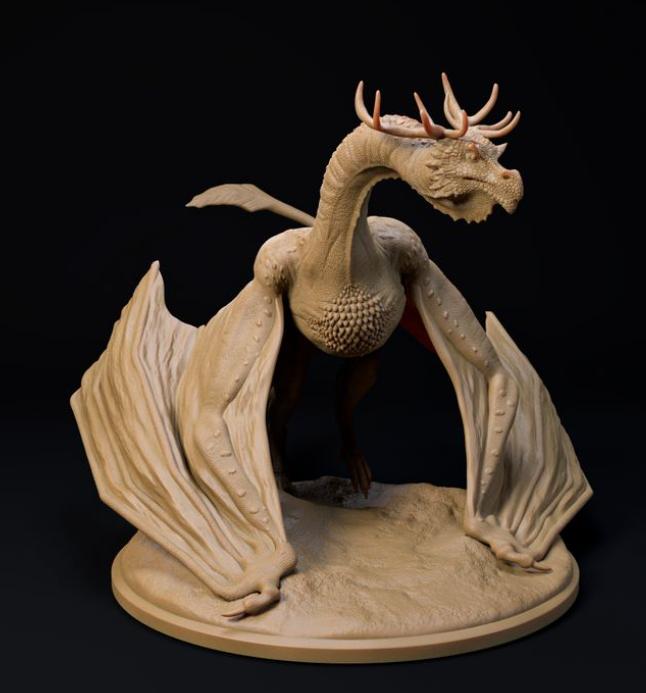 This Forest Wyvern is a 3D model by the wonderful creator Dino and Dog, which you can purchase from us as a 3D print. The dragon can be attached to the corresponding base.