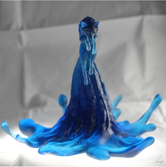 This water fox is a 3D model by the wonderful maker LabradoriteWolf and is available from us in transparent, blue transparent or gray as a resin print.
