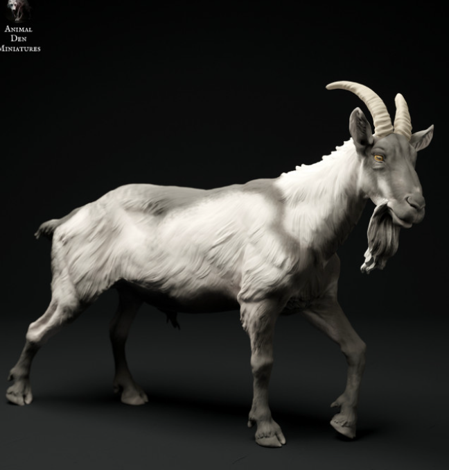 This goat is a 3D model by the wonderful creator Animal Den Miniatures, which you can purchase from us as a 3D print. You will receive the print unpainted, so you can let your creativity run wild.