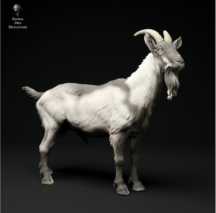 This billy goat is a 3D model by the wonderful creator Animal Den Miniatures, which you can purchase from us as a 3D print. You will receive the print unpainted, so you can let your creativity run wild.