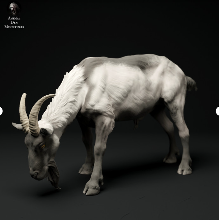 This goat is a 3D model by the wonderful creator Animal Den Miniatures, which you can purchase from us as a 3D print. You will receive the print unpainted, so you can let your creativity run wild.