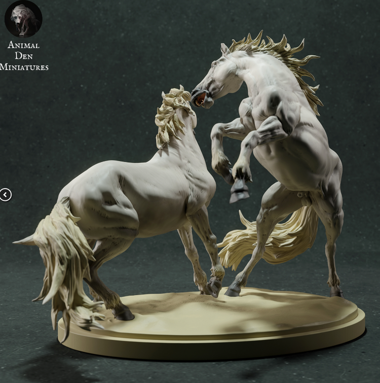 Ces étalons de combat sont un modèle 3D du merveilleux fabricant Animal den Miniatures, que vous pouvez acheter chez nous sous forme d'impression 3D. Vous recevrez l'impression non peinte, vous pourrez donc laisser libre cours à votre créativité.
