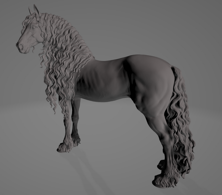 Dieser wunderschöne edle Friesenhengst mit welliger Mähne und Schweif namens "Silvester" ist ein 3D-Modell des wundervollen Machers BreathTime, welchen du bei uns als 3D Druck kaufen kannst.
