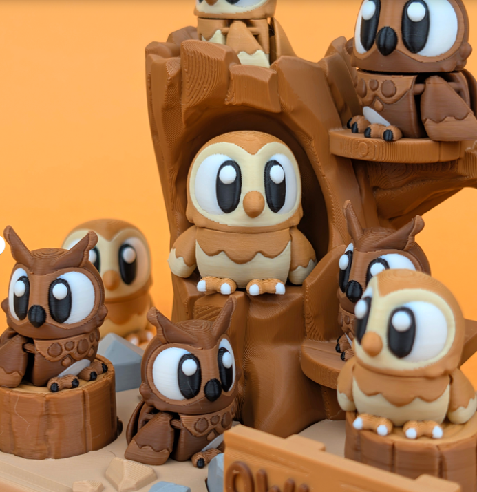 Diese zuckersüßen Eulen von GOB3D werden von uns aus farbigem PLA gedruckt. Dieses Material ist sehr stabil. Du kannst die Eulen einzeln erhalten (bei Einzeltieren wählen wir zufällig eine der verschiedenen Versionen aus, falls du eine spezielle Version einer der Eulen wünscht, bitte teile uns dies mit :) ), als Schlüsselanhänger mit Ring oder sogar als ganzes Set mit Zubehör. Die Eulen und Zubehörteile sind zusammensteckbar und können somit auch wieder auseinander gebaut werden. In den Sets sind immer entweder jeweils 1 größere und 1 etwas kleinere Eule (wie auf den Bildern), oder 2 größere und 2 etwas kleinere Eulen enthalten.