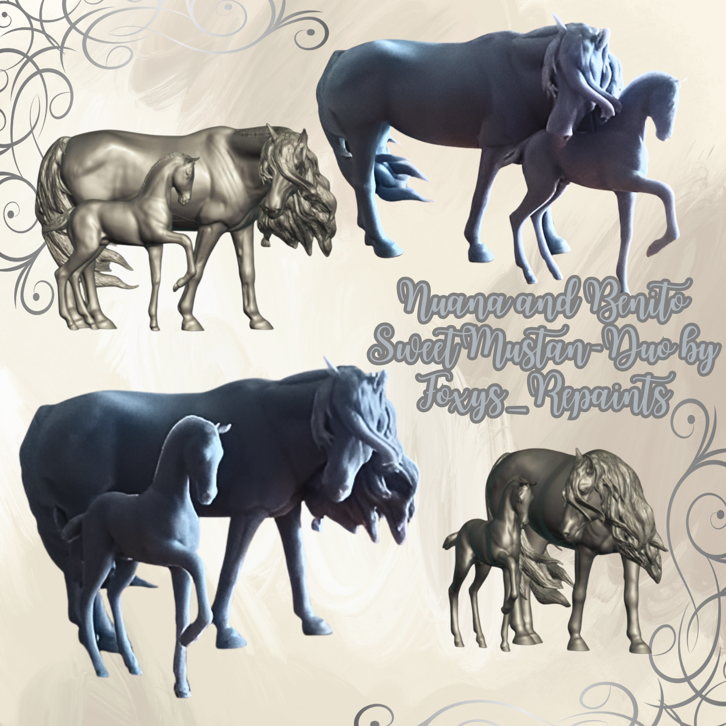 Dieses süße Mustang Duo namens "Nuana und Benito" ist ein 3D-Modell der wundervollen Macherin Foxys Repaint , welche du bei uns als 3D Druck kaufen kannst. Da die Künstlerin an jedem verkauften Modell mitverdient, sind diese beiden etwas teurer.