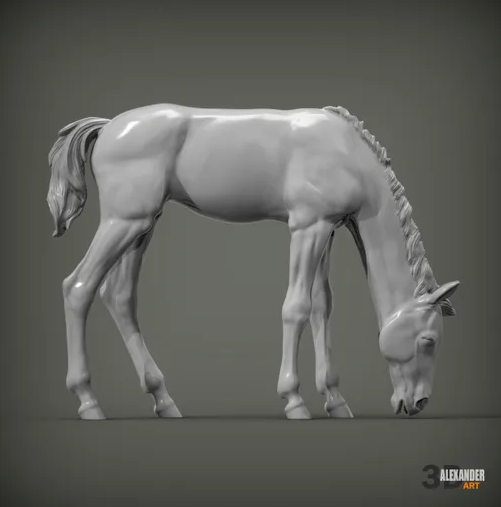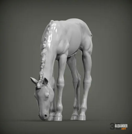 Dieses grasende Fohlen ist ein Original 3D-Modell des wundervollen Künstlers Azukmenko, welches du bei uns als 3D Druck kaufen kannst.