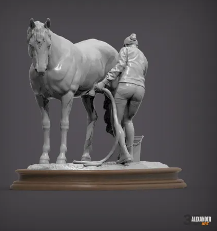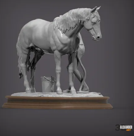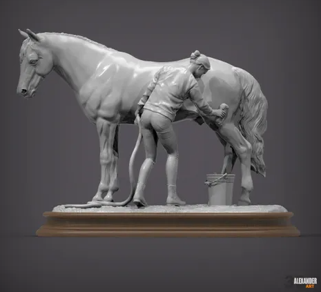 Dieses wundervolle Modell welches eine scene wie sie jeder Pferdehalter kennt dargestellt wird ist von Alexander3dart, welche du bei uns als 3D Druck kaufen kannst. Du erhältst den Druck nicht bemalt, so dass du deiner Kreativität freien Lauf lassen kannst.