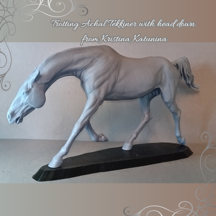 Dieser wunderschöne trabende Achal Tekkiner mit geneigtem Kopf ist ein 3D-Modell der wundervollen Macherin Katrina Katunina, welchen du bei uns als 3D Druck kaufen kannst. Du erhältst den Druck nicht bemalt, so dass du deiner Kreativität freien Lauf lassen kannst.
